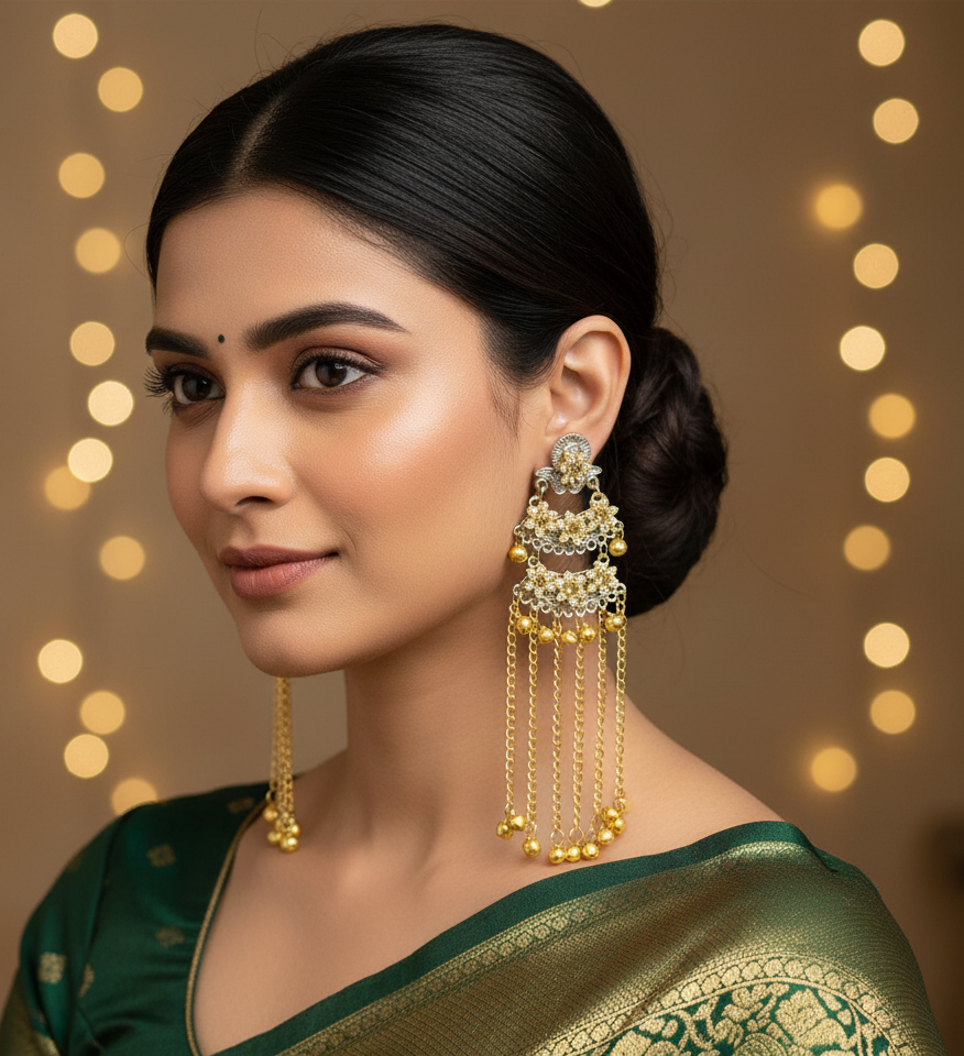 Golden Beaded Hoop Earrings with Jhumka Drop