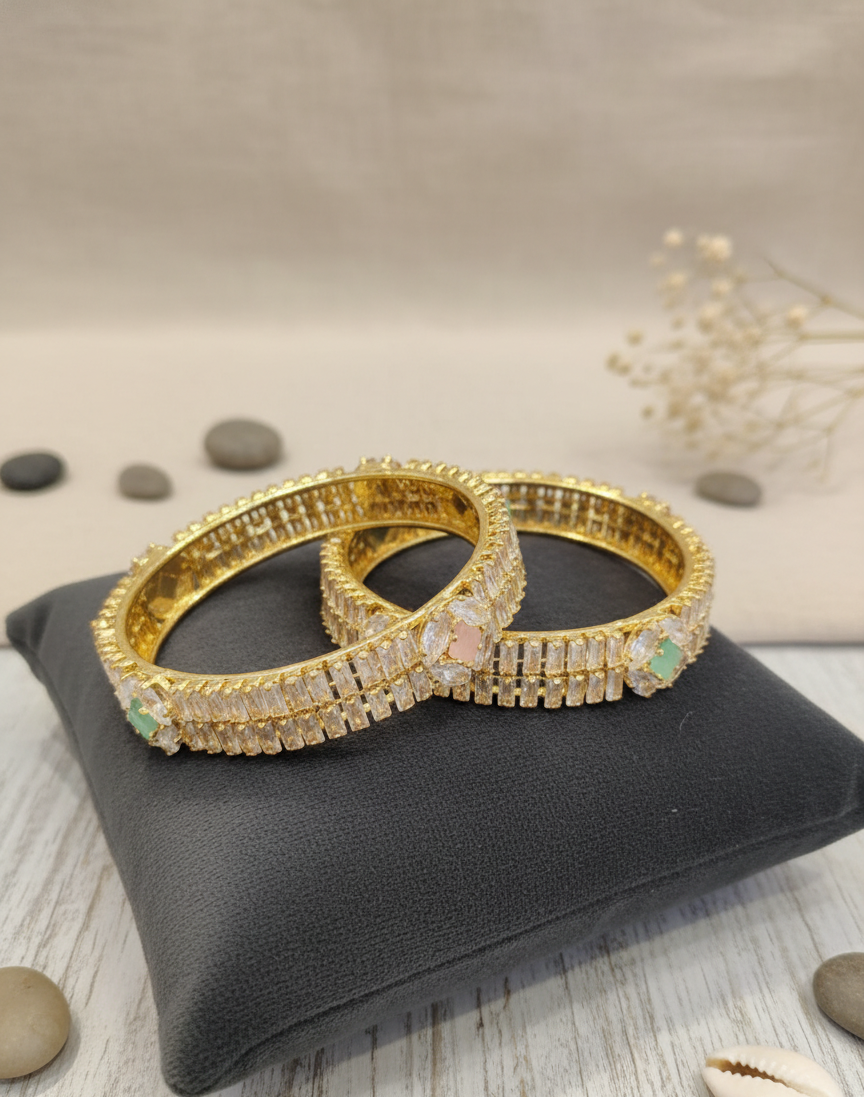 Regular price Rs. 450.00Regular priceUnit price / perRs. 900.00Sale price Rs. 450.00"Radiant Petal" Multicolored Stone Gold-Plated Bangles