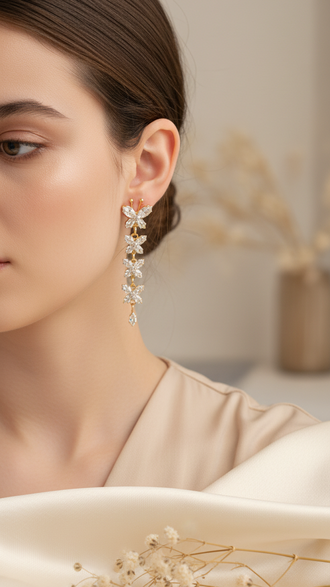 Embrace whimsical elegance with our 'Fluttering Cascade Butterfly Drop Earrings.' These enchanting earrings feature a...