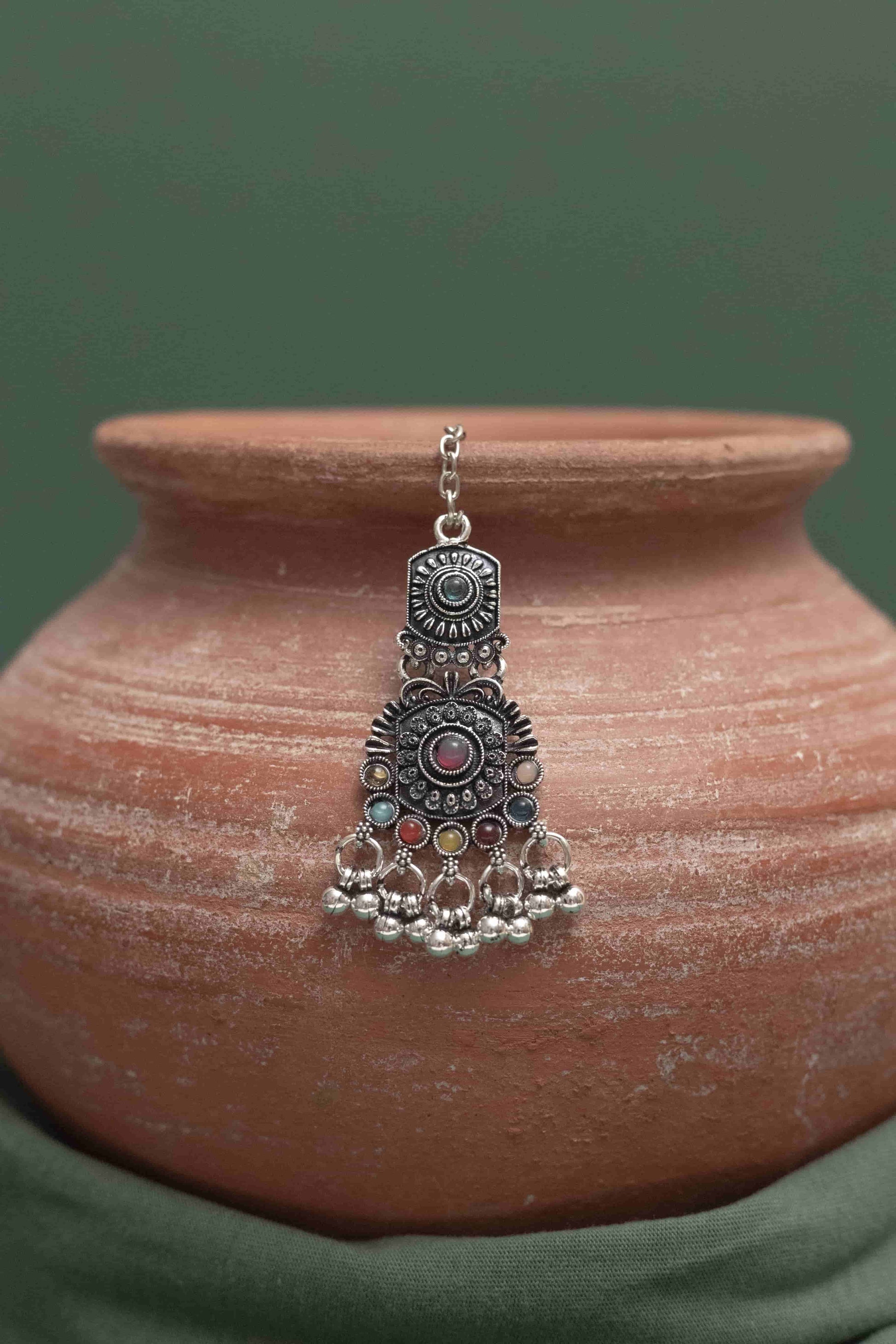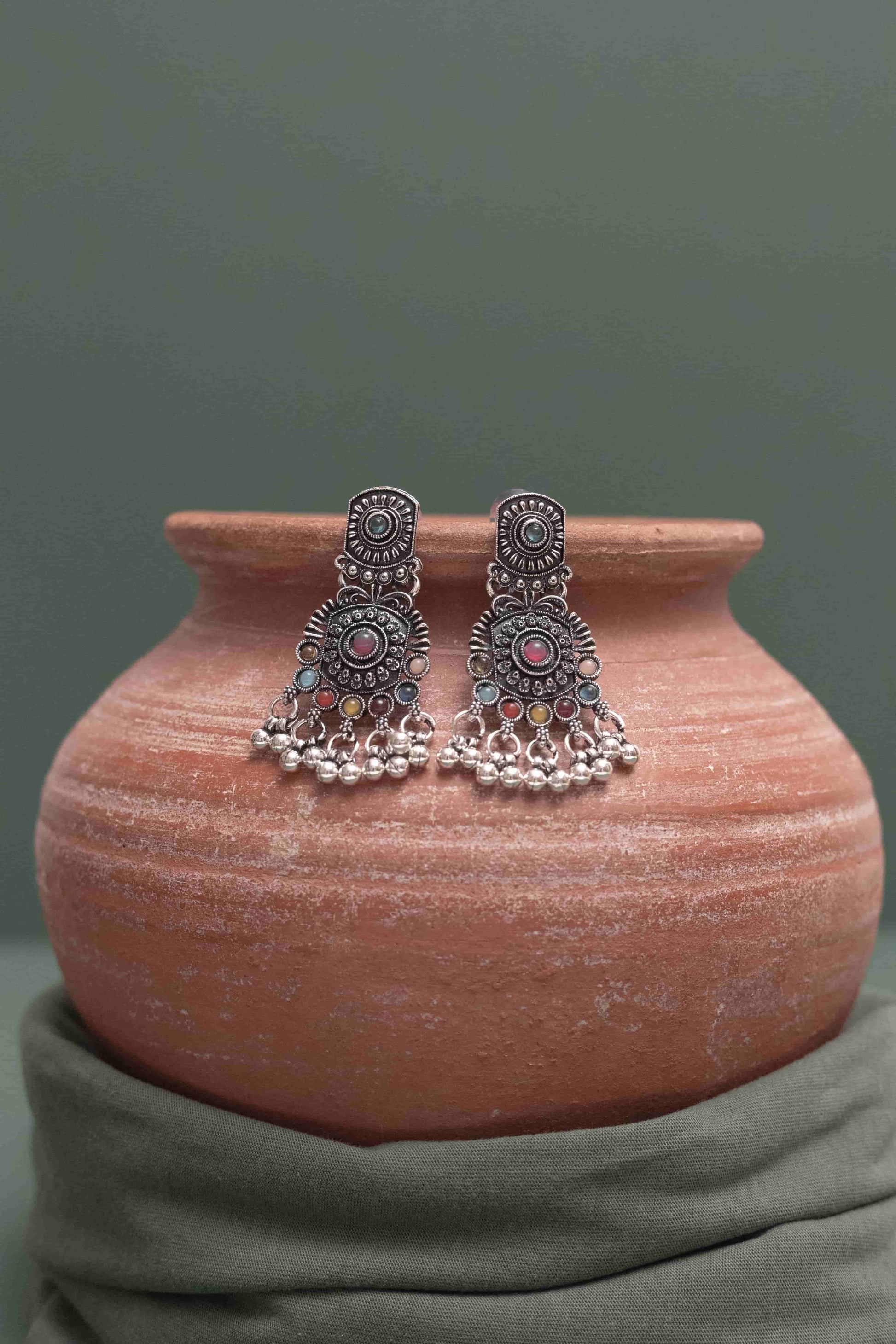 Oxidised Combo Choker Necklace with Round Multicolor Cabochons