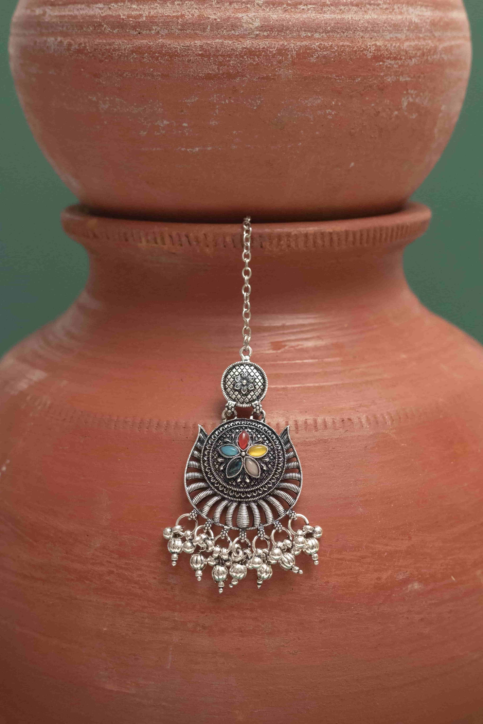 Oxidised Combo Choker Necklace with Teardrop Cabochon Flowers